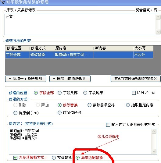 第二中是在结果的修缮中,将敏感词替换掉,或者删除掉:
